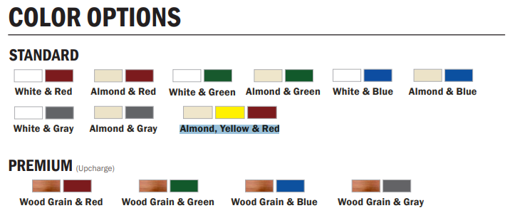 - Tower: (2) 5’ X 5’ Decks, 8’ x 12’ Base, 8’ x 8’ Playhouse w/ 4’ x 8’ Porch, Weatherwood Shingles, 3 Windows w/ Screens and Shutters
